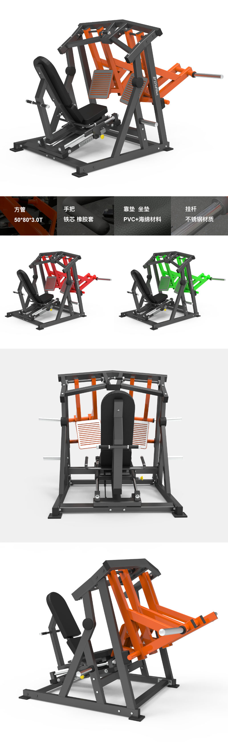 BFT-E04 BFT-E04 分動式坐式蹬腿訓練器 產品尺寸:1035×1555×1535mm 淨重: 215kgs 主管:方管50*80*3.0T 手把:φ25 鐵芯+TPV橡膠套 靠墊/坐墊:PVC+海綿材料 掛杆:不鏽鋼材質 最大承重:300kg 獲取報價