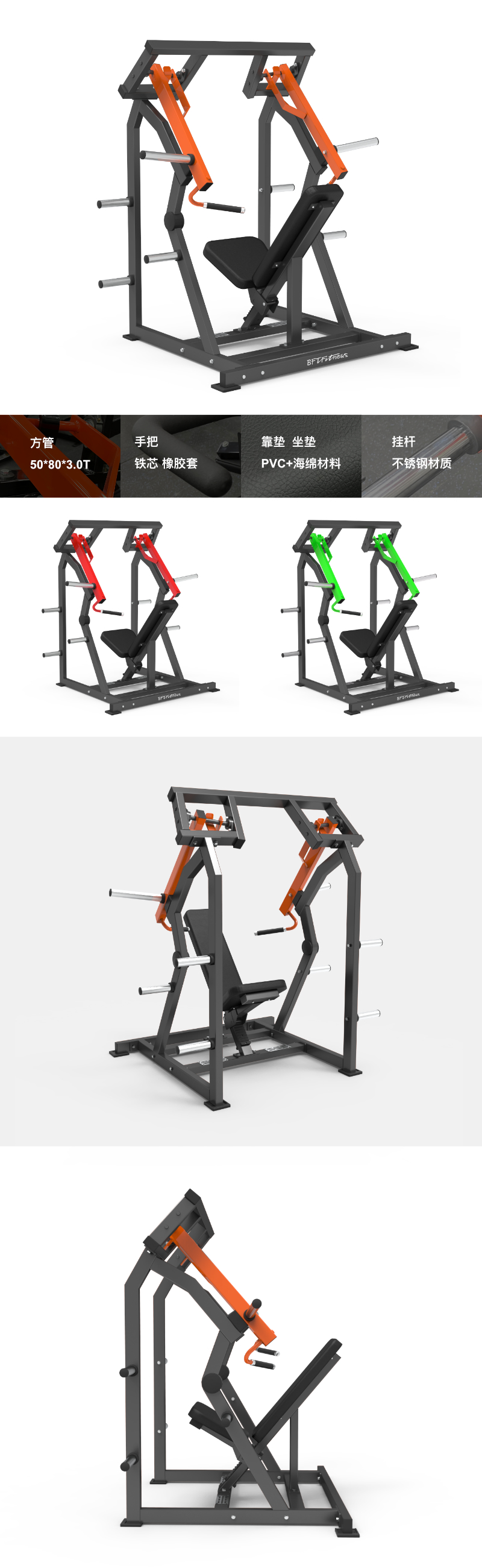 BFT-E18 BFT-E18 坐式推肩訓練器 尺寸:1854x1358x1886mm 淨重: 159kgs 主管:方管50*80*3.0T 手把:φ25 鐵芯+TPV橡膠套 靠墊/坐墊:PVC+海綿材料 掛杆:不鏽鋼材質 最大承重:300kg 獲取報價