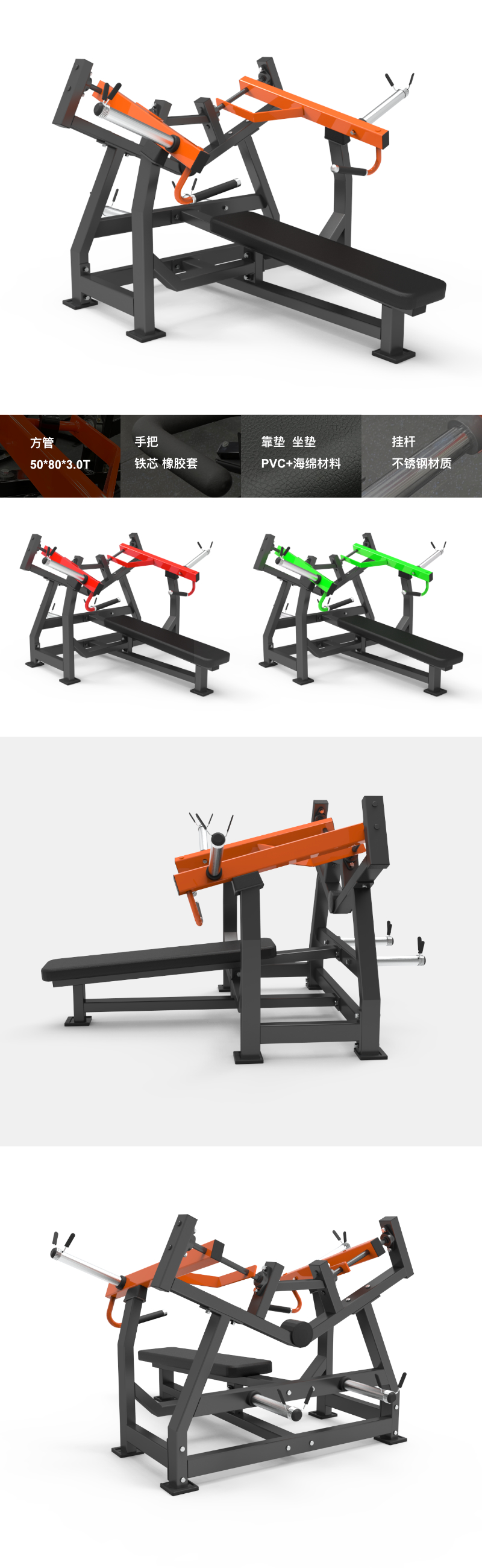 BFT-E19 BFT-E19 平臥推訓練器 尺寸:1481x1244x1461mm 淨重:99kgs 主管:方管50*80*3.0T 手把:φ25 鐵芯+TPV橡膠套 靠墊/坐墊:PVC+海綿材料 掛杆:不鏽鋼材質 最大承重:300kg 獲取報價