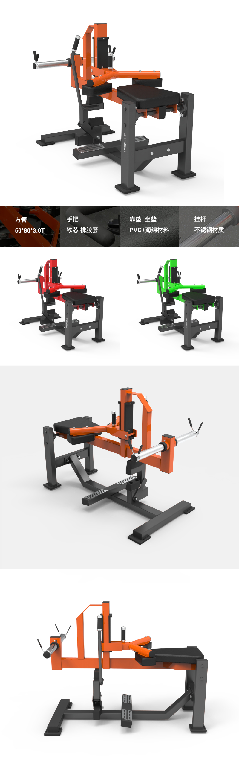 BFT-E20 BFT-E20 坐式小腿訓練器 尺寸:1266x628x956mm 淨重 : 63kgs 主管:方管50*80*3.0T 手把:φ25 鐵芯+TPV橡膠套 靠墊/坐墊:PVC+海綿材料 掛杆:不鏽鋼材質 最大承重:300kg 獲取報價