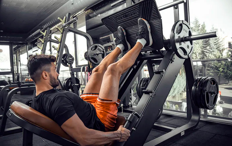 2. 45度倒蹬機:主要用於鍛煉腿部、背部和臀部的肌肉力量。這種倒蹬機的設計特點是其斜度為45度,並且具有固定的運動軌跡。用戶在使用時,可以將腳放在踏板上,通過腿部用力蹬踏來進行訓練。