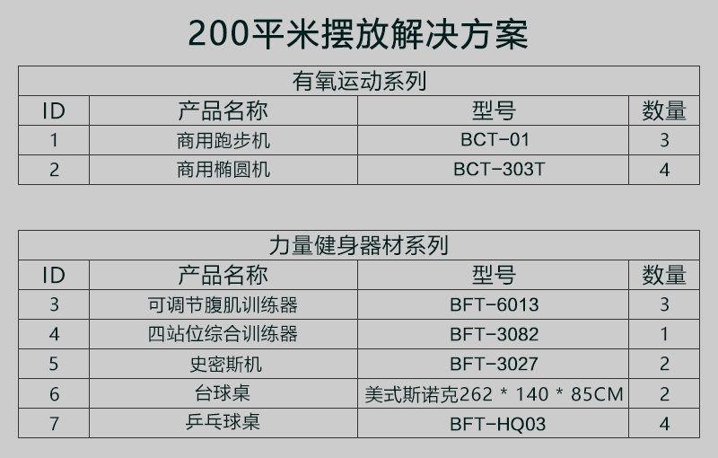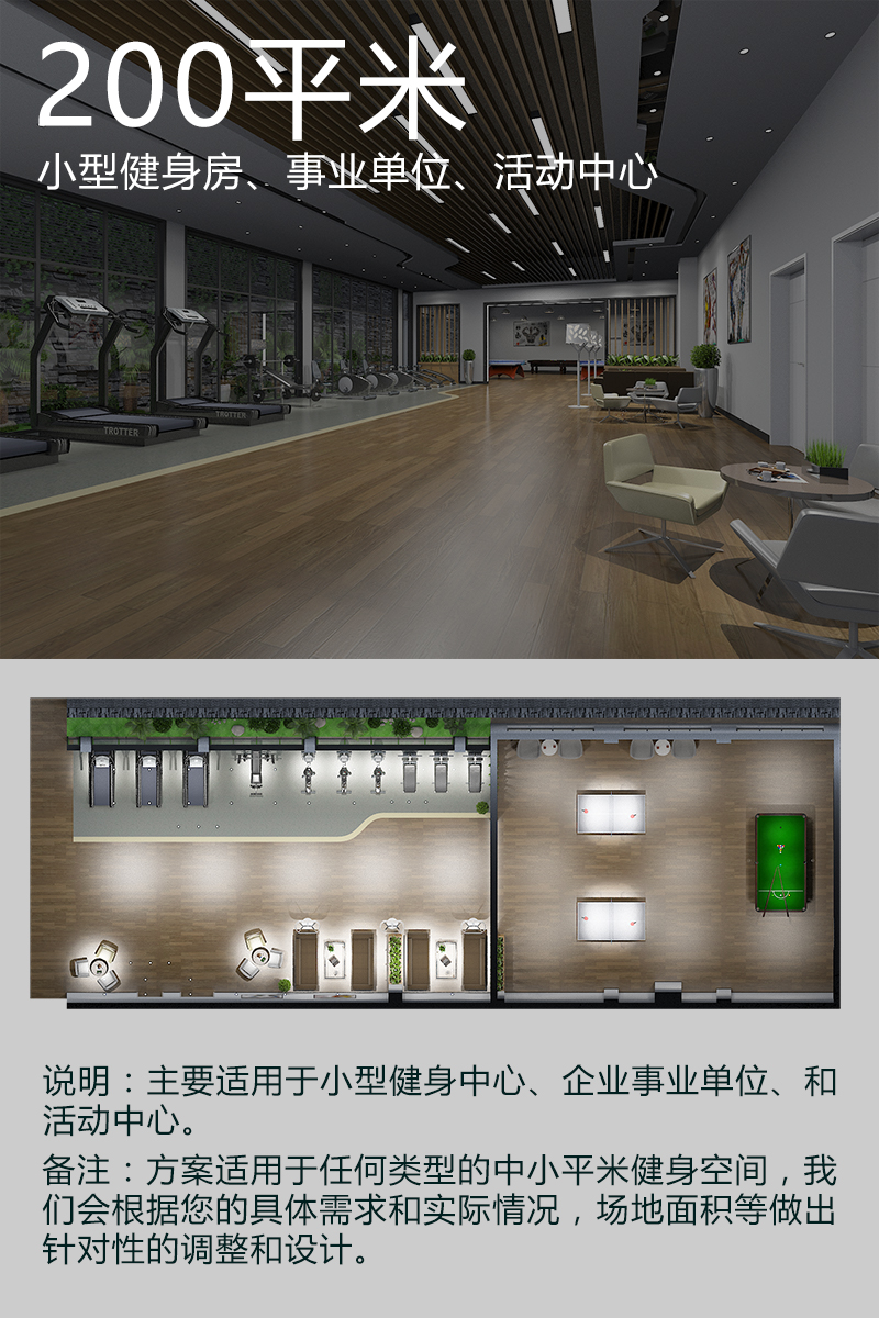 200平米健身房配置方案(企事業單位活動中心)