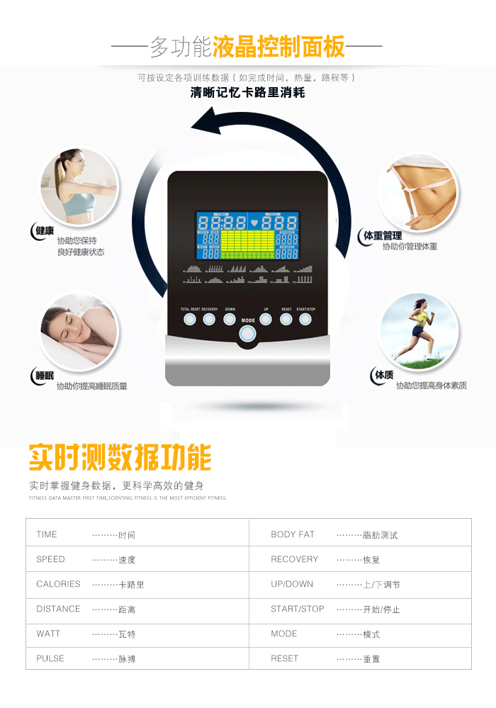 | 預設程序(LCD) | 距離倒計時模式,卡路裏倒計時模式,時間倒計時模式 |