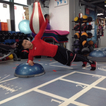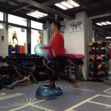 三個動作為一次循環,上肢,下肢,核心。 強度從低到高,逐步遞增,每組可做12-20次,間歇時間一分鍾。 (如無BOSU的可在地麵上完成)可提高肌耐力,心肺功能,肌肉爆發力。
