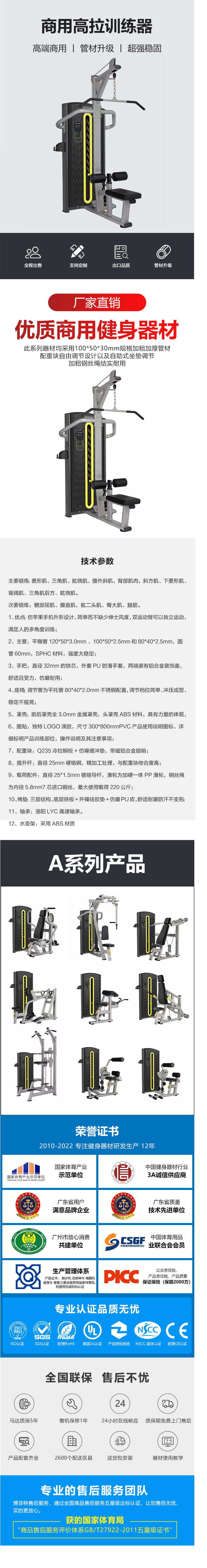 9、載荷配件:直徑25*1.5mm鍍鉻導杆,滑輪為加硬一體PP滑輪,鋼絲繩為內徑5.8mm7芯進口鋼絲,最大使用載荷220公斤;