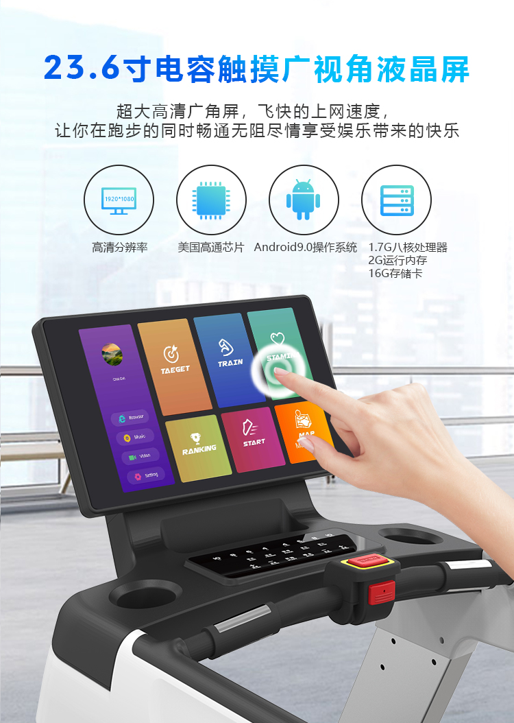 顯示屏:時間, 卡路裏,距離,心率,坡度,速度,緊急停止