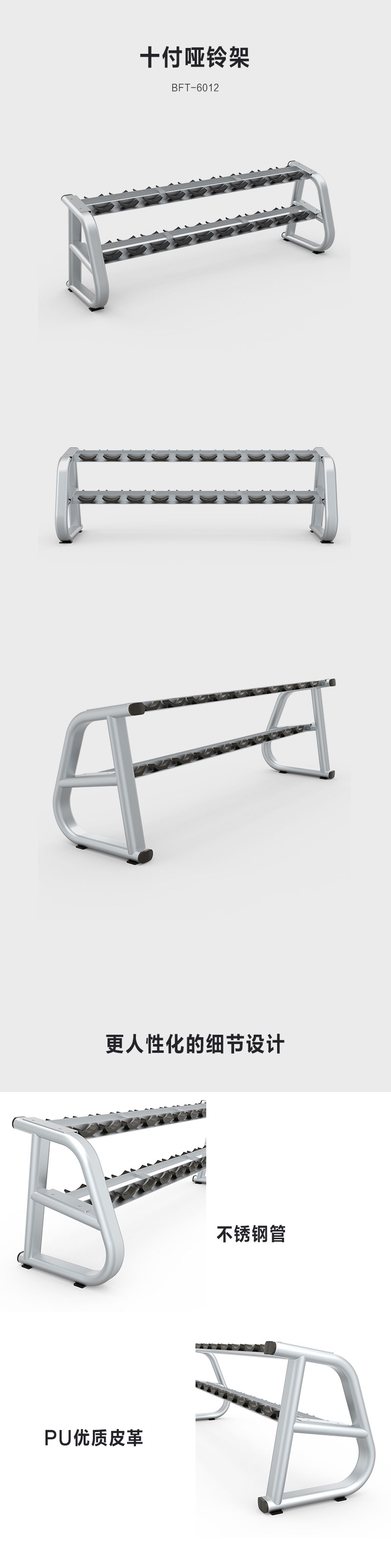 BFT-6012 BFT-6012十付啞鈴架 參考價:¥3360 1、管材:平橢管110*60*3.0和角鋼,SPHC材料,強度大穩定; 2、啞鈴托:PP或者ABS 尺寸:2500*730*860mm 毛重/淨重:118/95KG 獲取報價